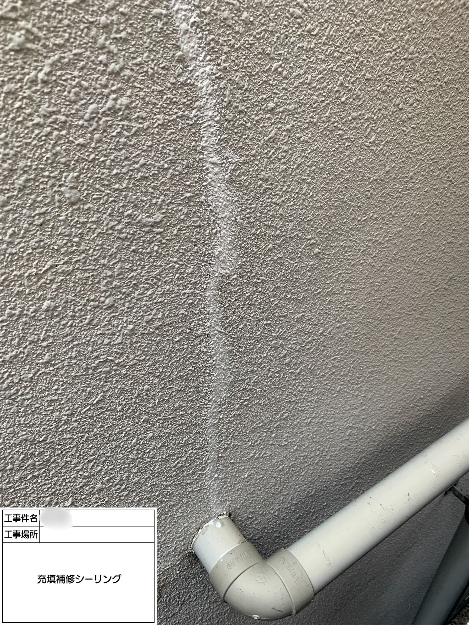 ひび割れ部分はVカット補修を施し、シーリングで再発を防止。そのうえで、ラジカル制御型シリコン塗料を使用し、紫外線による劣化を抑える仕様にしました。コストを抑えながらも、標準以上の耐候性を確保しています。