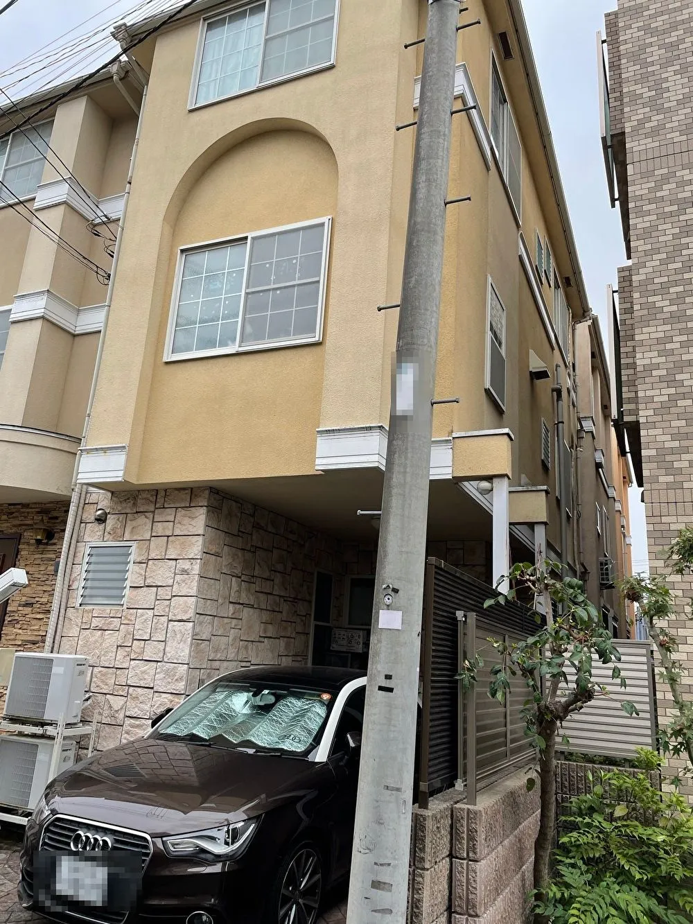 豊島区H様邸の外壁塗装事例。紫外線による劣化を補修し、無機ハイブリッド塗料で施工。グレージュの上品な外観に仕上げました。